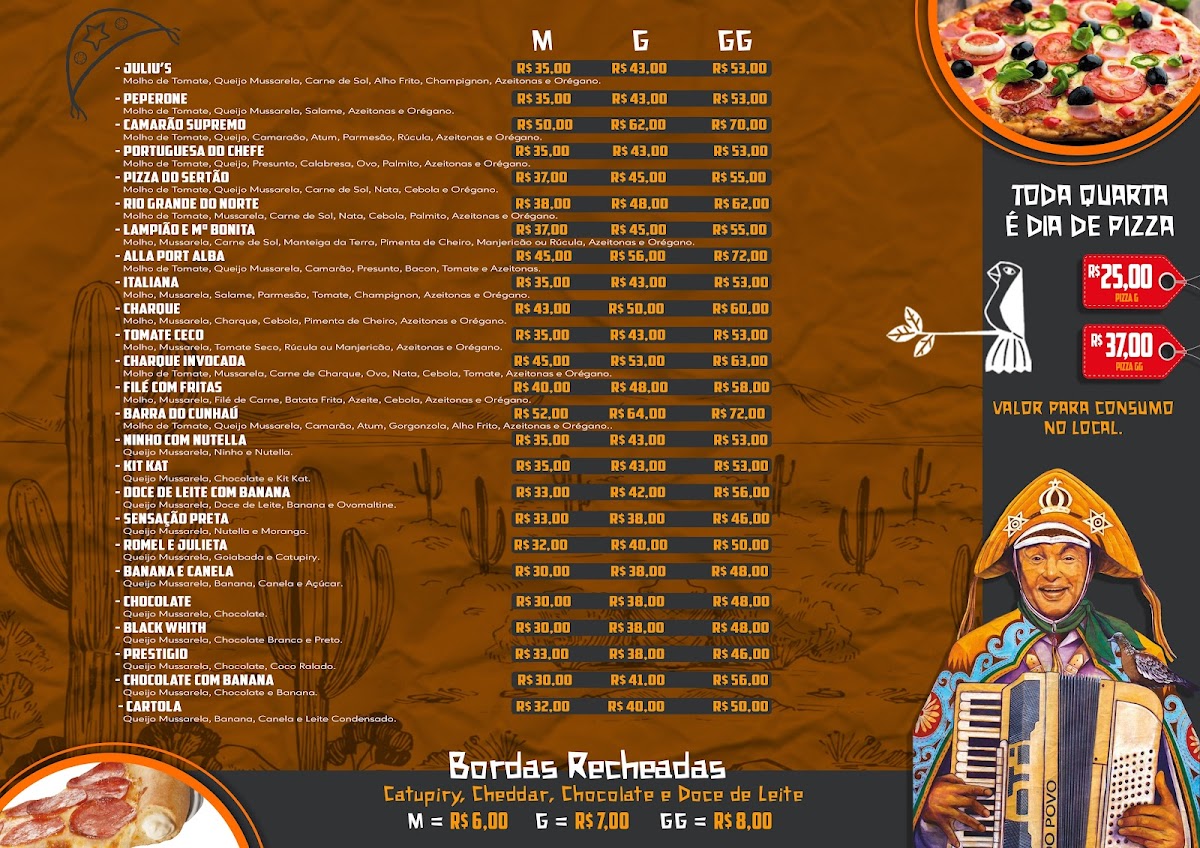 Introducing Juliu's Food, a culinary gem nestled in Canguaretama, Brazil. This vibrant eatery offers an enticing menu that showcases their specialties, primarily focusing on delectable pizzas. Acclaimed by locals, Juliu's Food is known for its generous portions and affordable prices, making it a favorite among families and pizza lovers alike.